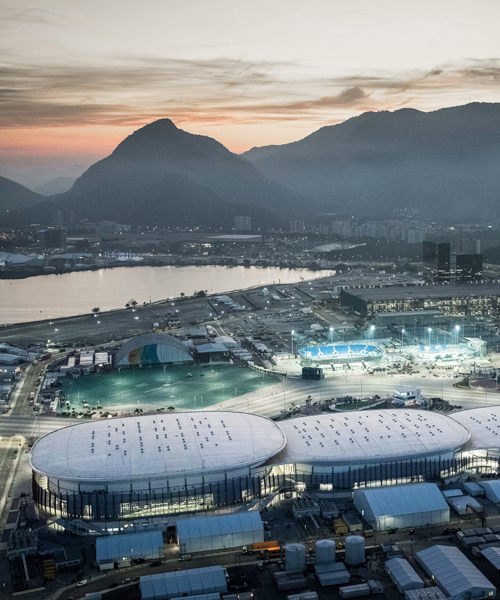 wilkinson eyre’s design is part of the international design competition for the masterplan of the olympic park, which was won with AECOM. wilkinson eyre developed the concept for the venue and took the project to detailed design. in spring 2013 the project was handed over to the rio mais consortium to be delivered by local architect arqhos consultoria e projetos. see more coverage of the 2016 rio olympics on designboom here.