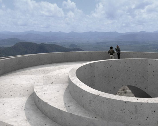a continuation of the existing rock formations, the hotel is articulated as a series of stepped horizontal planes, courtyards, and gardens.
