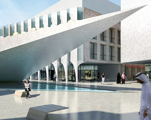 ‘white marble facades and deep shaded arcades create dynamic and contrasting lighting conditions. passersby glimpse the prayer scene while going about their day-to-day activities.’