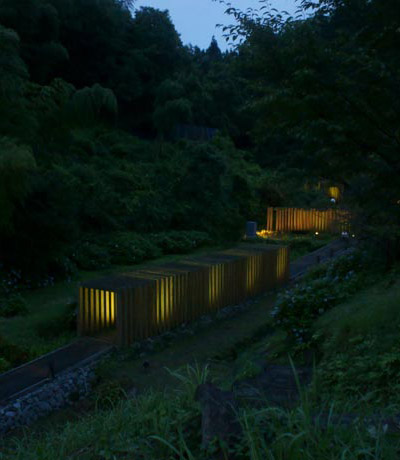 the project sits like a ring placed over the terrain, with its funnel-like roof forming a shaded perimeter walkway and an introverted core.