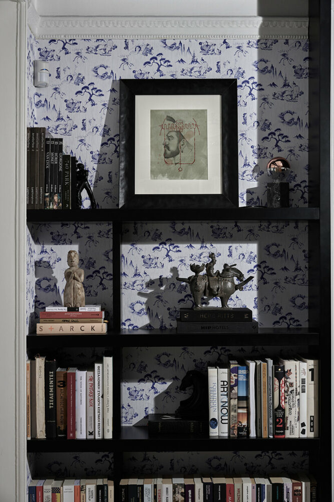 Furthermore, the design team introduced upscale custom-made creations like the one-of-a-kind closet, the Japanese wallpaper, and the boiseries gracing the walls give the house an eye-pleasing added value, while lavish bits and pieces — from designer furniture and light fixtures to hip ceiling fans and memorabilia/works of art — bless every single space with a careful touch of arty elegance. As Saint of Athens describes it, the Upper House is the epitome of a modern living experience in the heart of Athens, grounded in the finest aesthetic principles of a glorious past.