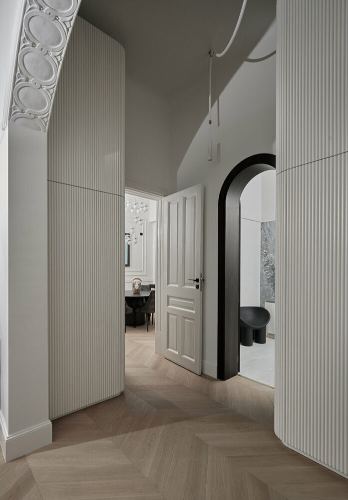 Located in the heart of Kypseli, one of Athens’s most historic urban areas, the floor-through Upper House apartment occupies the first level of an iconic building designed and constructed in the 1920s following the architectural style of eclecticism. Saint of Athens founder Nikos Palaiologos teamed up with A&O Architects to renovate his understatedly luxurious 220 sqm property, devising an interior space reminiscent of New York’s Upper East Side apartment houses of the aristocratic flats on the 7th arrondissement of Paris. The house was originally built for the family of a wealthy Greek industrialist of the previous century, which explains many of its rare and inherent features, such as the five-meter high ceilings, the intricate plaster motifs, and the genius overall layout offering easy access to all spaces and a soothing, flowing sense of comfort.