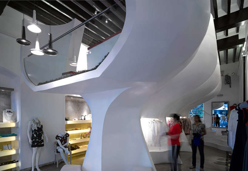 mezzanine structure divides ground floor into shoe and clothing displays image ©