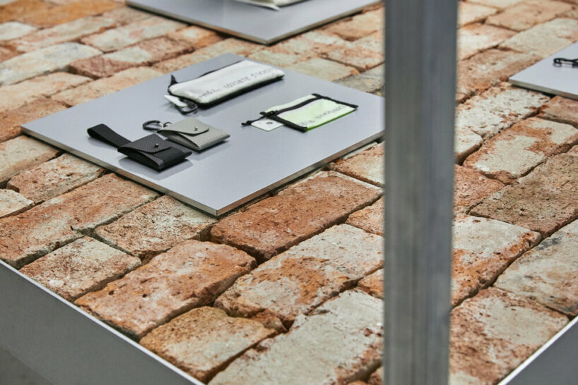 the fixtures and display units are crafted from repurposed materials, including tiles and bricks salvaged from demolished buildings