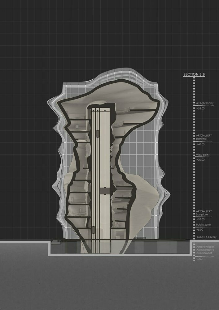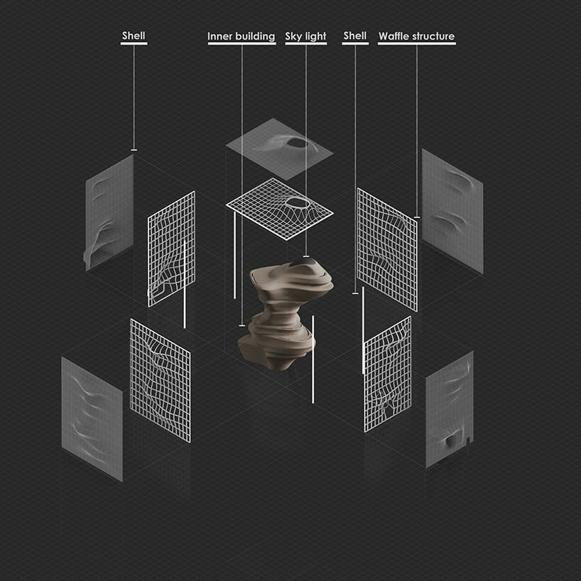 Dubai Art Museum hides a sculptural inner layer made of rammed earth