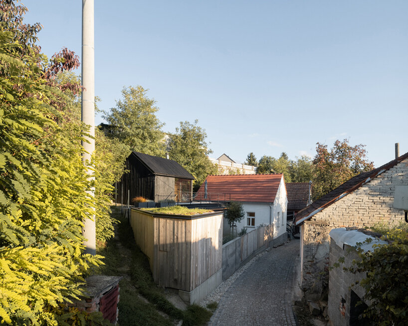 the project sits like a ring placed over the terrain, with its funnel-like roof forming a shaded perimeter walkway and an introverted core.