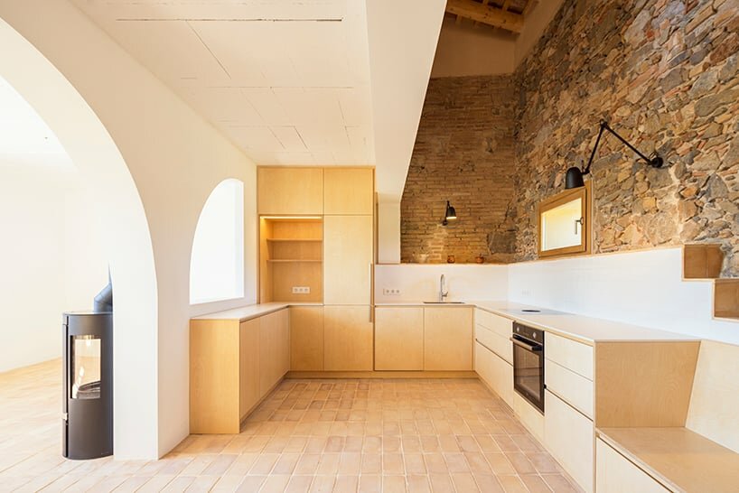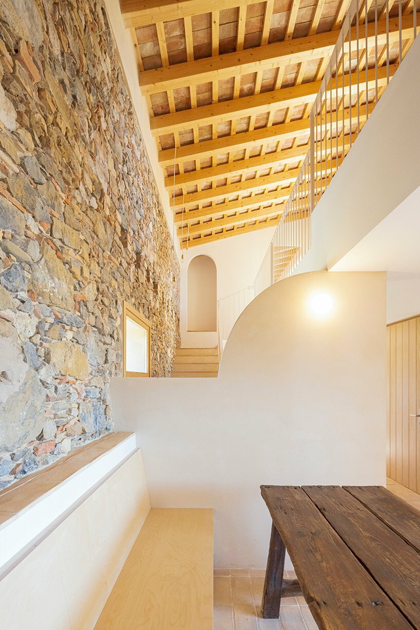 the renovation reintroduces the typology of geometric arches within the interior spaces