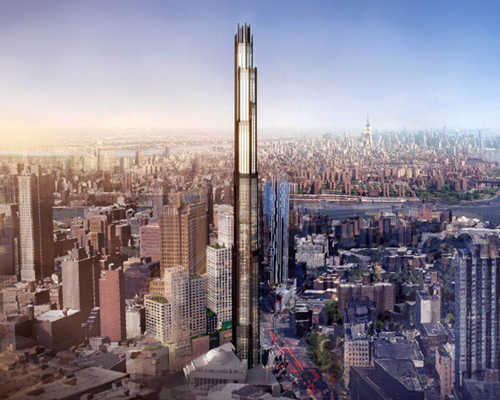 new york-based pracitce SHoP architects has revealed the first image of ‘340 flatbush avenue’ — a supertall skyscraper planned for downtown brooklyn. new york YIMBY reports that the tower could rise to a total height of 1,000 feet (305 meters) dwarfing its surrounding context. SHoP are again collaborating with developers JDS, who are also behind the firm’s 111 west 57th street project. the scheme’s residential component will incorporate 550 units across approximately 90 floors, spanning a total of 466,000 square feet. the development also includes 140,000 square feet of commercial space. ‘340 flatbush avenue’ has a tentative targeted completion date of 2019.