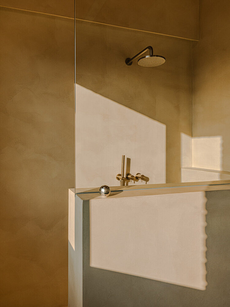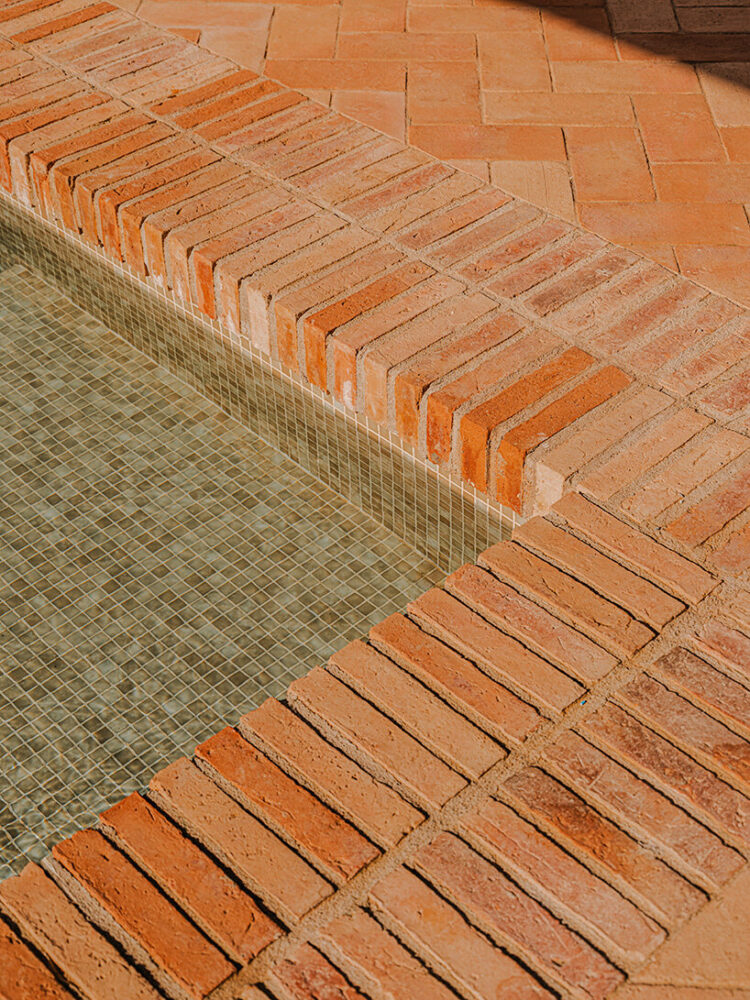 Patio House is anchored by its handmade brick, produced at Forn d’Obra Duran, one of Catalonia’s last artisanal kilns. Each brick, shaped from natural clay, slow-dried, and wood-fired, is slightly different, creating a subtle variation across walls, pavements, sills, and copings. Brick forms the structure, the envelope, and the surface underfoot. By choosing a material that earns its patina, the architects reinforce the commitment of the project to longevity and environmental coherence. Indoors, the palette features microcement on the ground floor, natural parquet above, chestnut wood for built-ins, exposed ceramic vaults on the ceilings, and bathrooms finished with glazed tiles. SIGLA Studio treats light as another structuring element. The house receives sun from morning to late afternoon, and the occupants remain constantly aware of its movement, seasonal changes, shifting shadows, and fluctuating intensities.