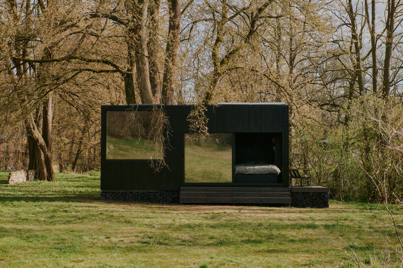 Berlin-based startup Raus unveils its latest cabin retreat in Biesenthal, Germany, designed by architect Sigurd Larsen. Founded in 2021 by school friends Christopher Eilers, Johann Ahlers and Julian Trautwein, the company’s mission is to provide city dwellers with short stays in spectacular landscapes that aren’t too remote to reach.