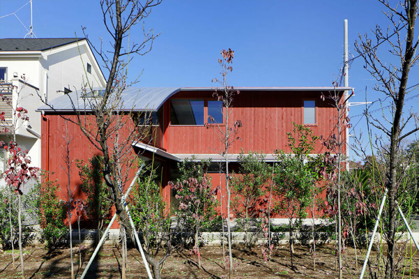 CASE-REAL tops deep red wood-clad house in tokyo with a silver roof