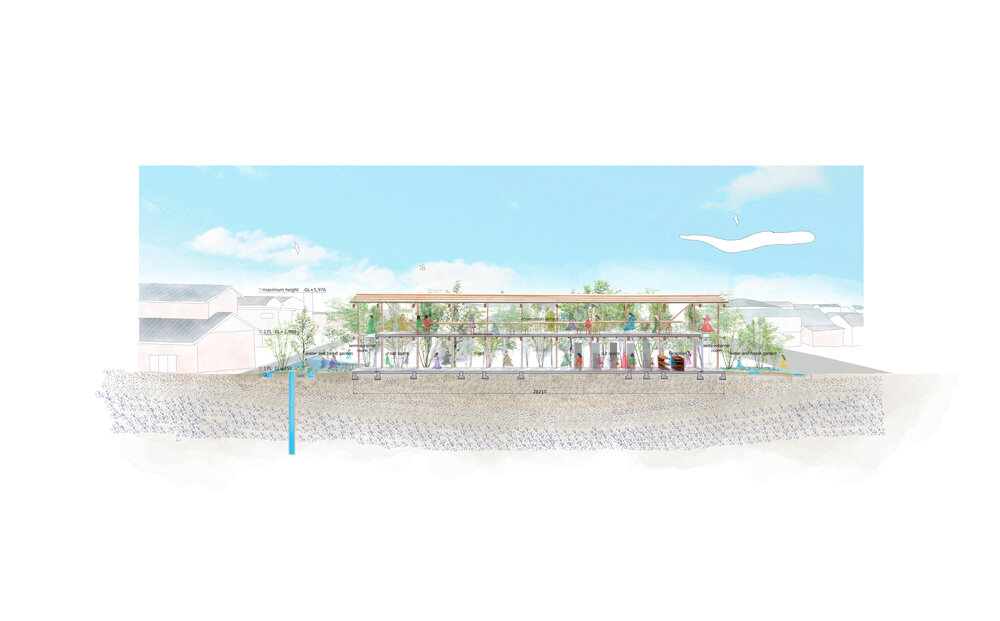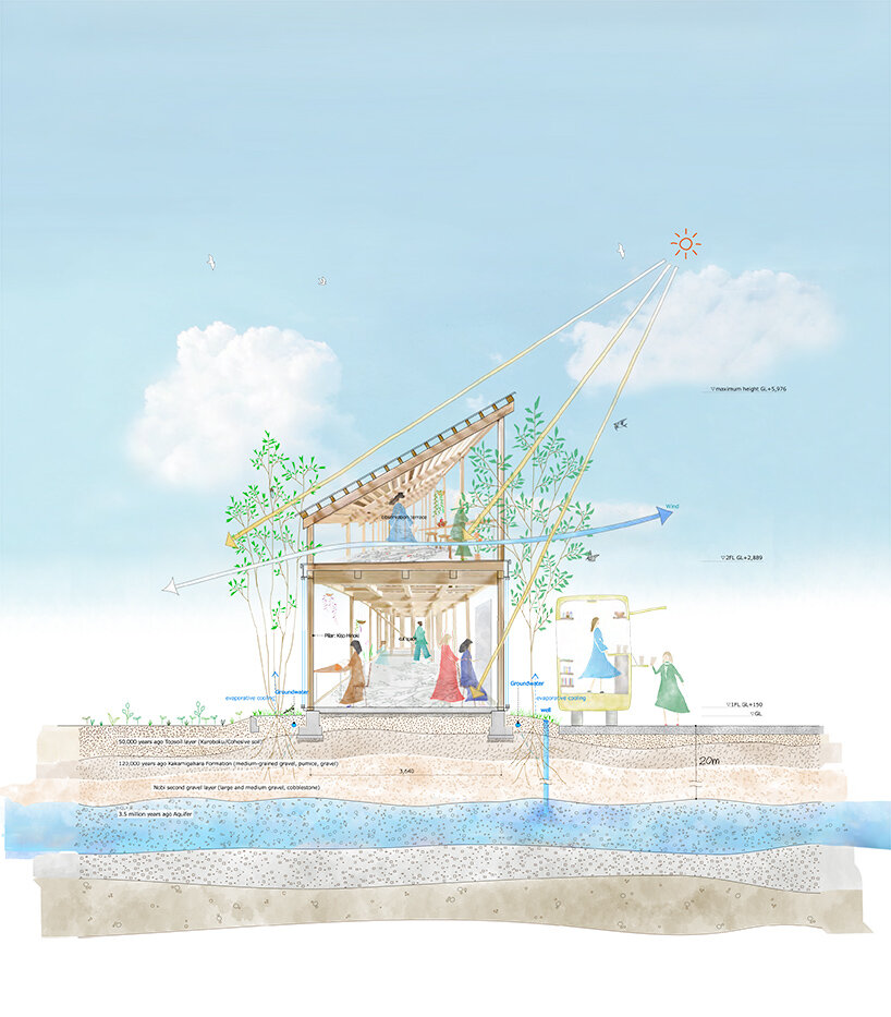 a continuation of the existing rock formations, the hotel is articulated as a series of stepped horizontal planes, courtyards, and gardens.