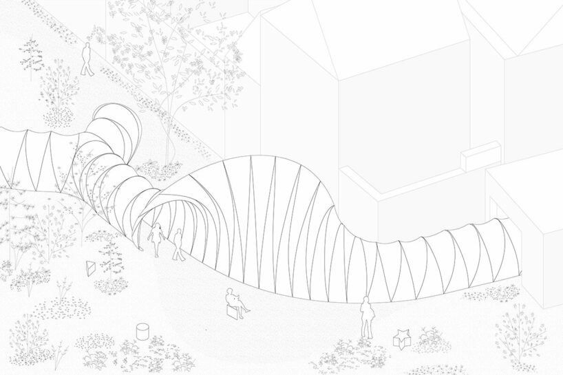 the immersive textile passage connects a previously hidden monastery courtyard to the city | images ©