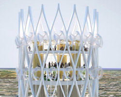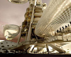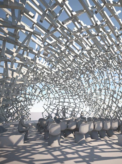 a continuation of the existing rock formations, the hotel is articulated as a series of stepped horizontal planes, courtyards, and gardens.