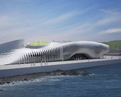 a continuation of the existing rock formations, the hotel is articulated as a series of stepped horizontal planes, courtyards, and gardens.