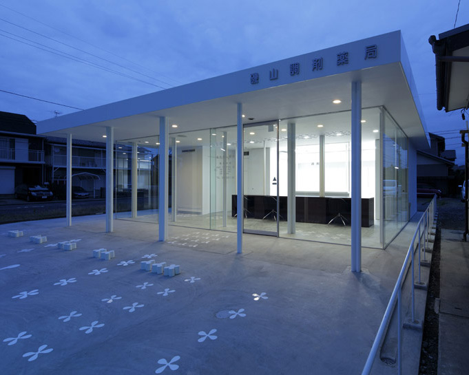 osaka-based architecture practice SPACESPACE has completed ‘isoyama dispensing pharmacy’, a single-storey building in suzuka-shi, mie, japan. situated in a suburb populated by cars, the design utilizes a large parking space in front of the structure as a multifunctional square for the local residents.
