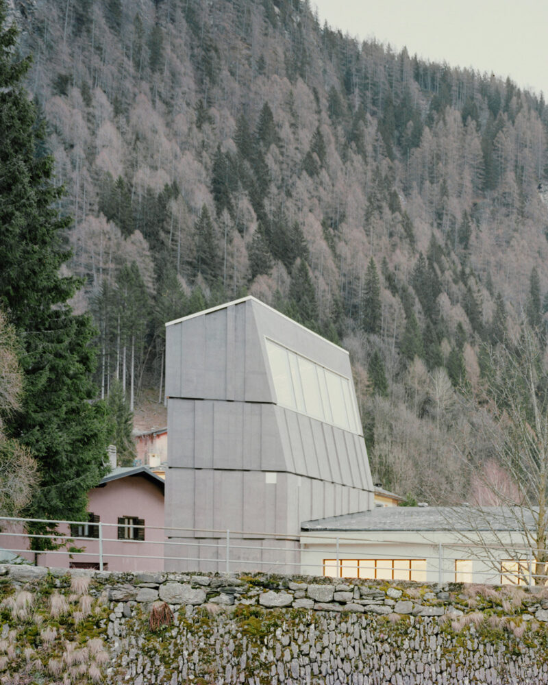 ES-arch designs spluga climbing gym as concrete monolith in northern italian mountains