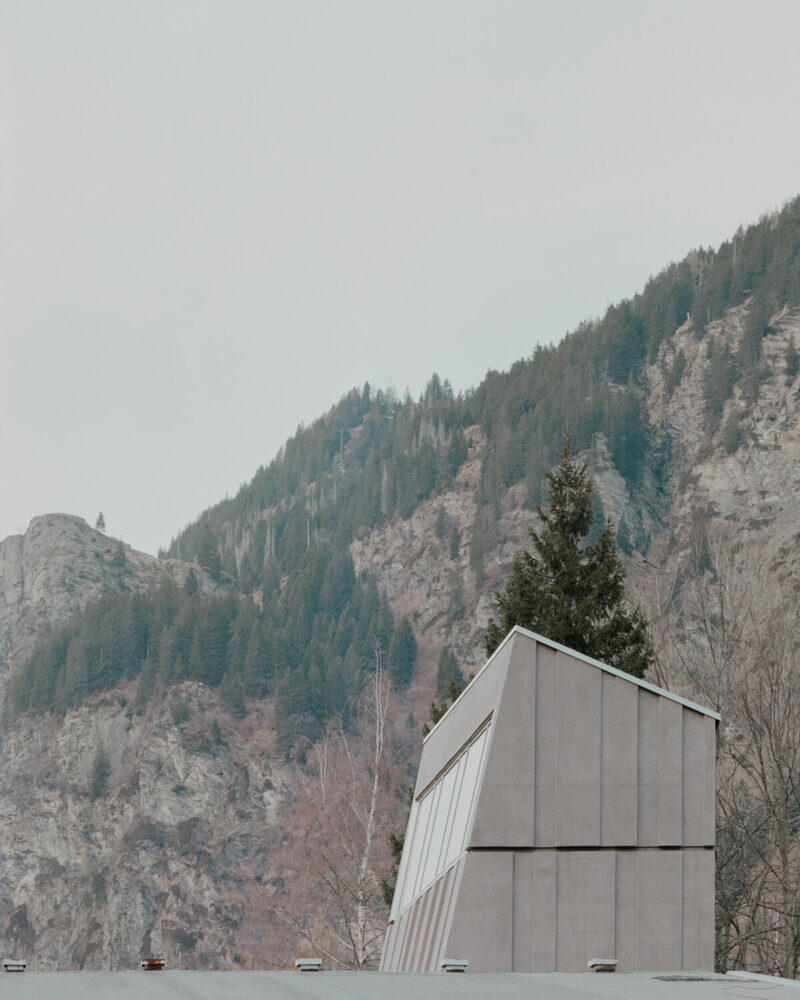 High trees surrounding the Spluga Climbing Gym serve as a natural scale for measuring its height, which varies in perception with the changing seasons. In warmer months, the foliage emphasizes the connection between the gym and the forest, adding a dynamic element to the interaction between architecture and nature. This is a building defined by its ability to express itself through its materiality and relationship with the landscape, evoking the timelessness of monumental rock walls and clear geometric forms.