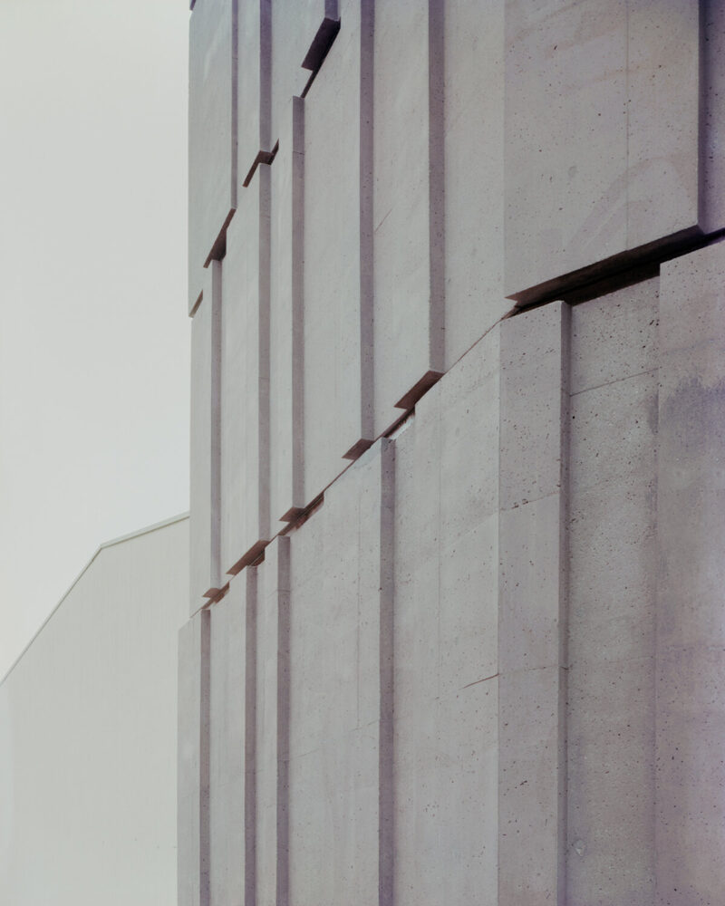pigmented cast-in-place concrete is sandblasted so that its color alters throughout the day
