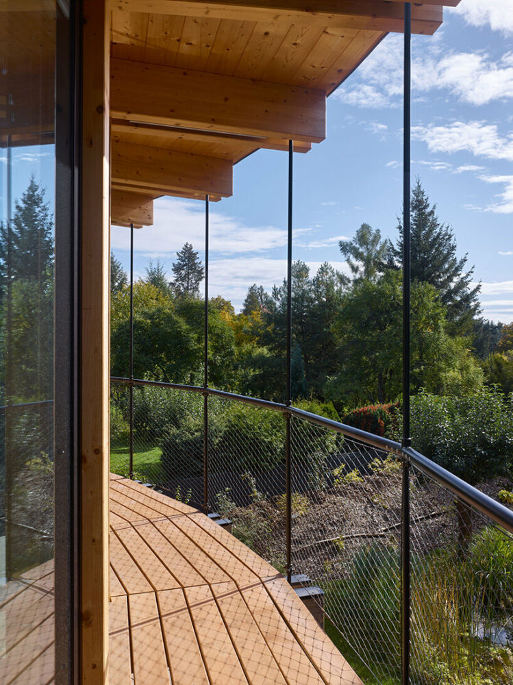 The house is built primarily from timber, a renewable material. The building’s construction respects its shape and reveals the constructional principles literally to the last detail, including steel joints and tie rods that add a finishing touch to the interior and exterior. The built-in furniture has been placed between the beams in such a manner that the rooms resemble ship cabins.