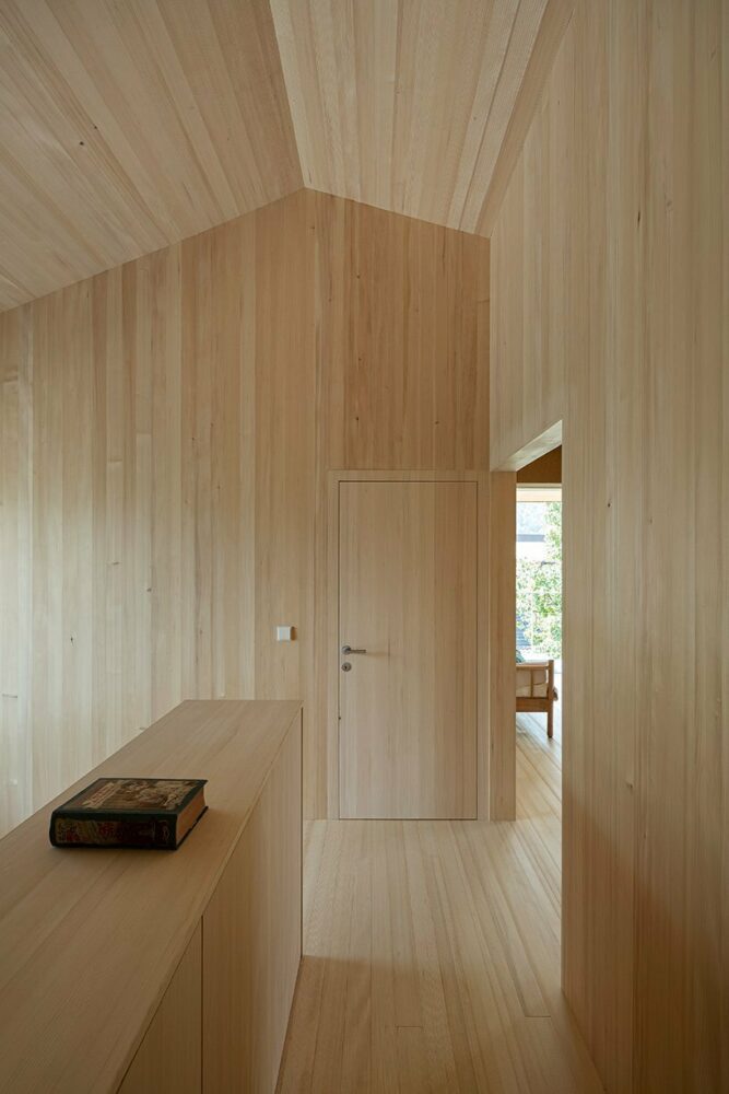Architectural community a15 and designer Michael Reichegger demolish the lightweight construction of a prefabricated house to build a two-story structure using straw bales. Erected in 1976 in South Tyrol, Italy, the existing dwelling’s condition makes a comprehensive renovation unattainable leading to the complete dismantlement of the framework, retaining only the basement. The new two-leveled residence sits directly on top of the understructure’s trace reconstructing most of its form.