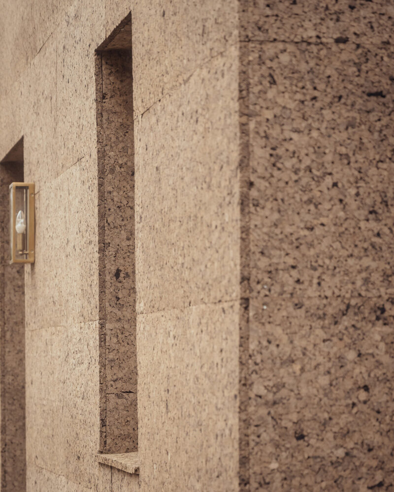 the project sits like a ring placed over the terrain, with its funnel-like roof forming a shaded perimeter walkway and an introverted core.