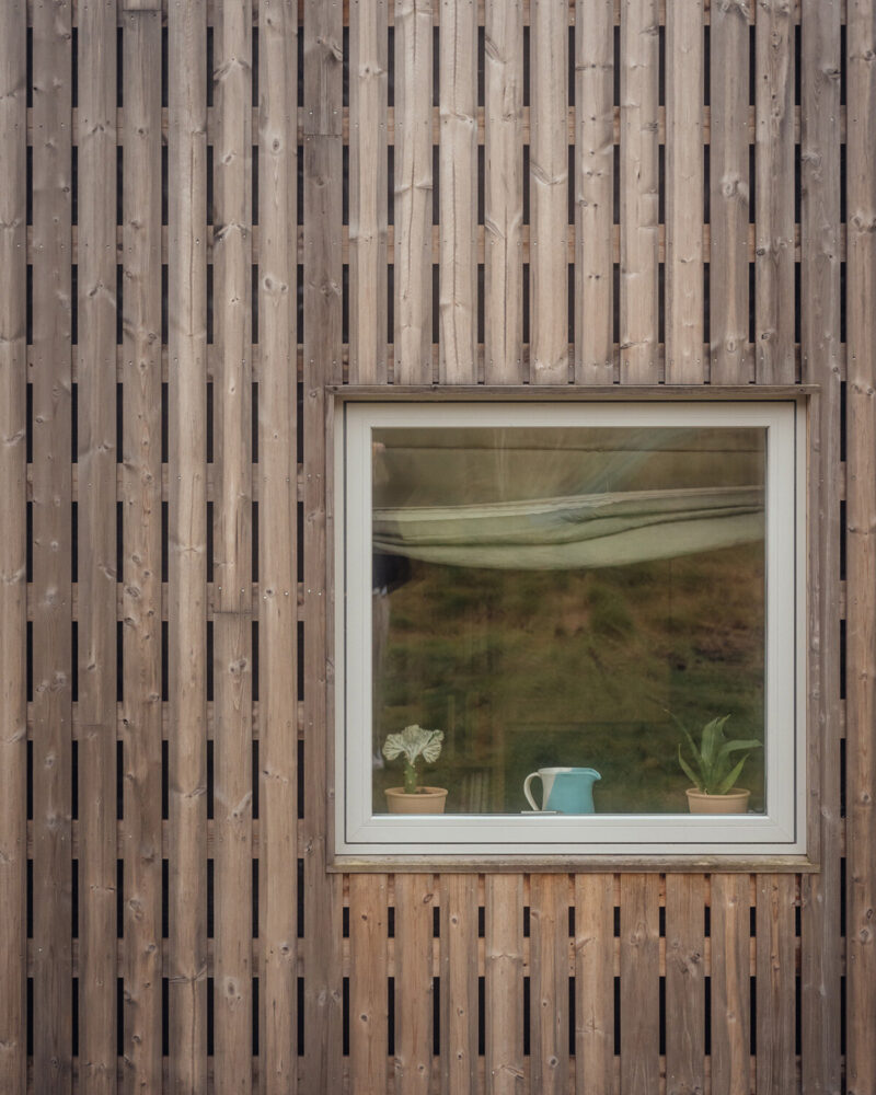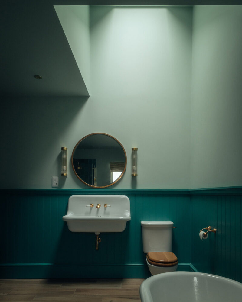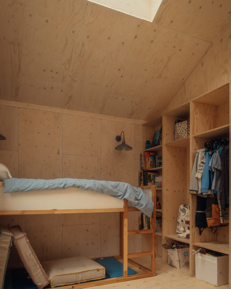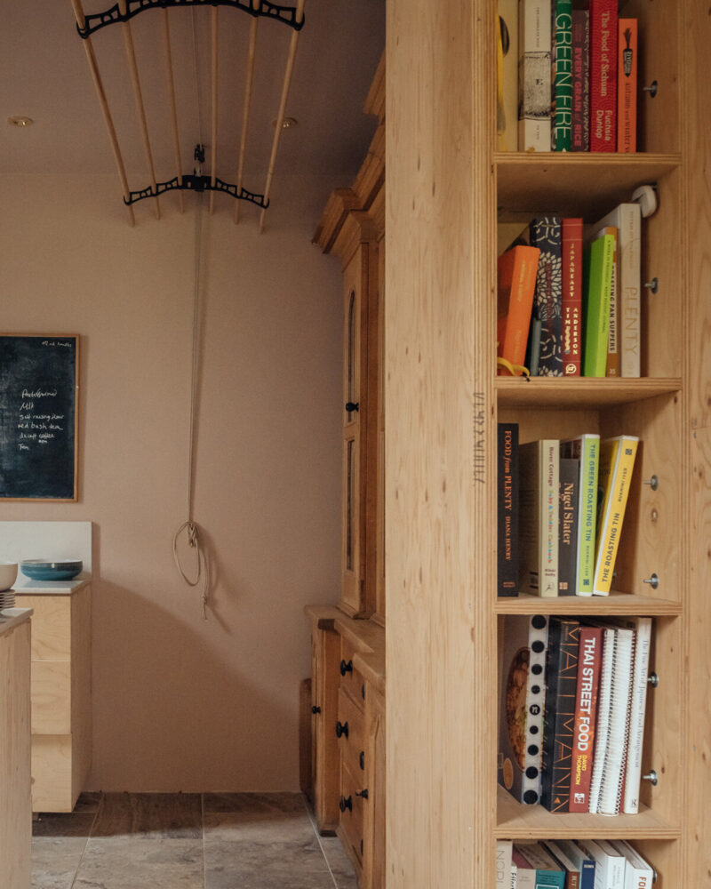 reupholstered furniture and salvaged elements reflect a resourceful design ethos