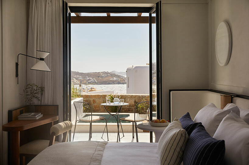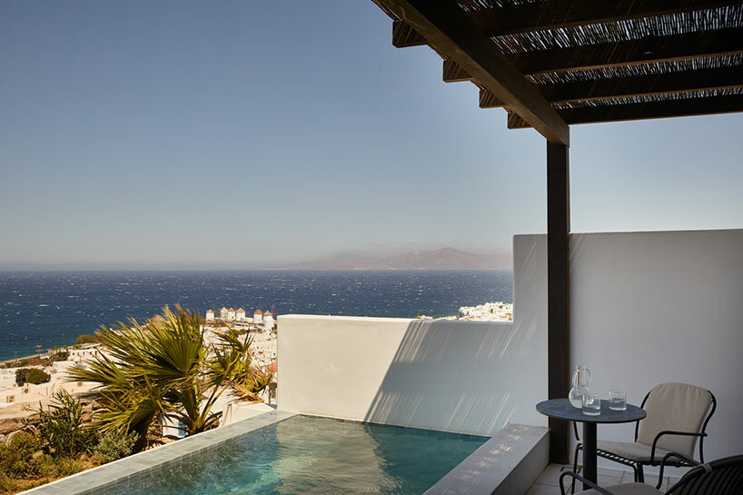 local natural stone, embossed pine wood and rattan elements are used throughout all 46 of the rooms