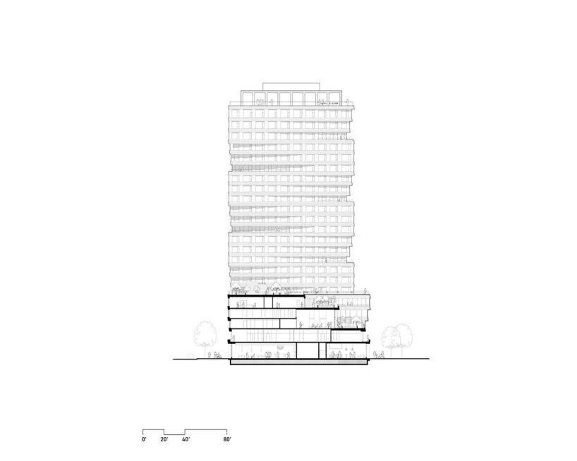 Verde features amenities like a fitness center, lounges, a sky deck, and ground-level shops and cafés