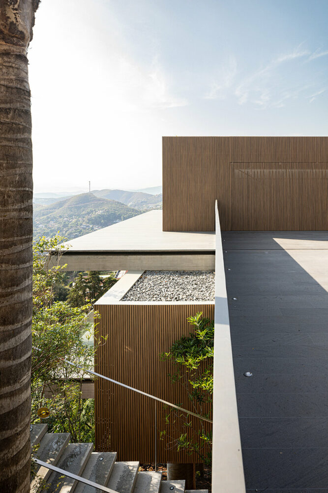 ‘To its fullest extent, it is a very calm house: its presence on the street, its fluctuation over the slope, the succinct composition of materials, the different relationships with the view, and even its decoration. Some exquisite mid-century Brazilian pieces are used very sparsely, with presence and voids between each piece, letting each designer’s trace be fully felt and appreciated. It is a house to be flavored with full attention,’ concludes Studio MK27.