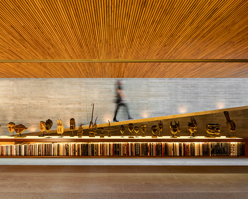 as the owners of the property later intend to convert the residence into a cultural foundation, the layout of the house has been designed accordingly. social spaces reveal exhibition-style artifacts, such as carefully positioned african masks. consequently, art blends with everyday objects, and domestic life merges with the historical pieces without the feeling of living inside a museum.
