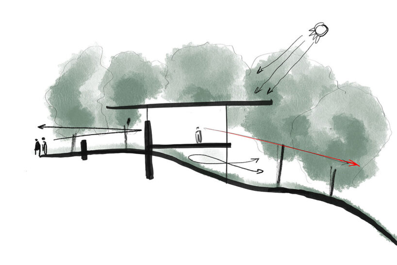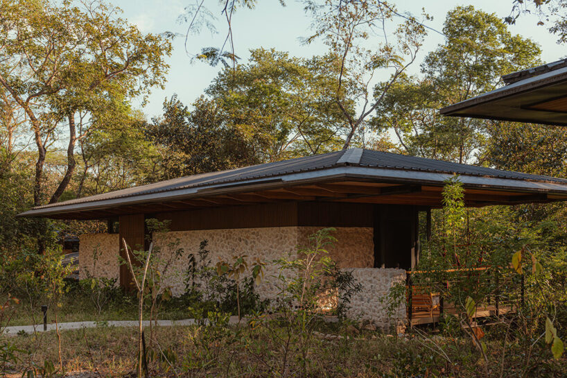 long roof overhangs reduce solar heat gain and protect against heavy rains