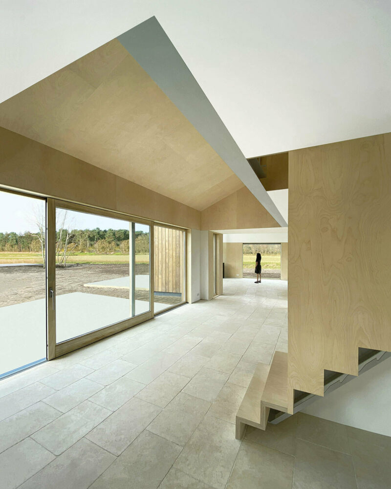 the home overlooks the surrounding woods, dunes, and the North Sea beyond studio to po ma