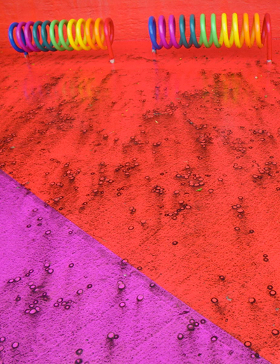 large blocks of reds, magentas and oranges define the ‘red’ square of ‘superkilen’