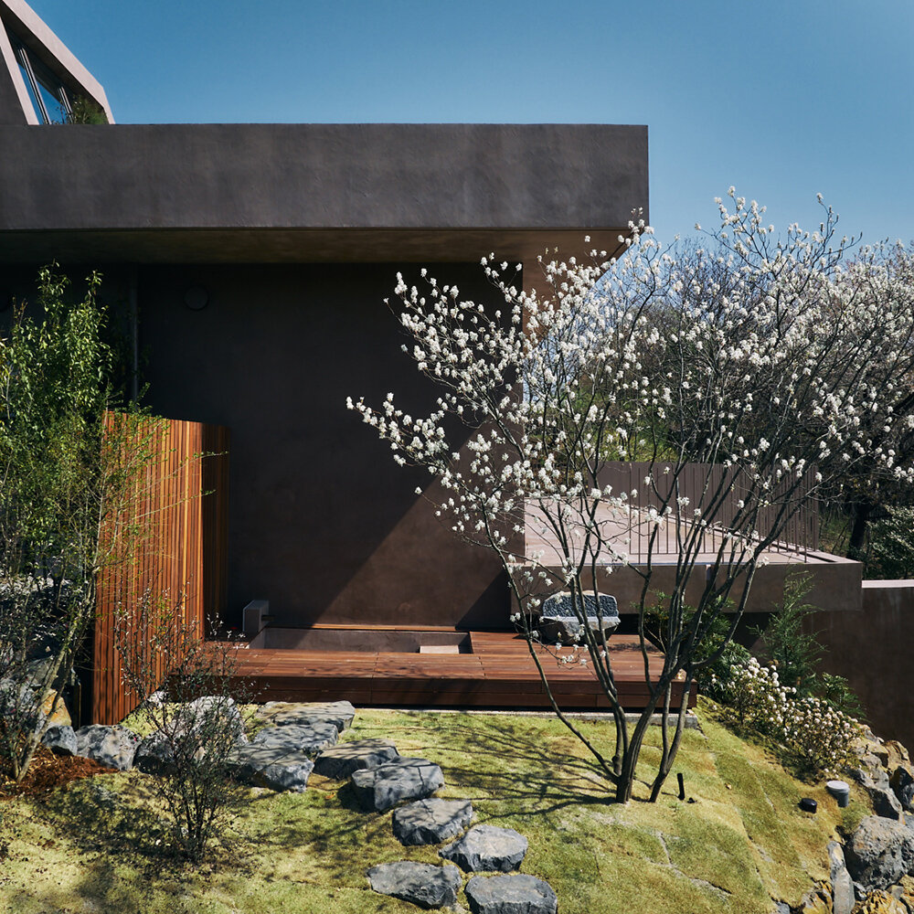 NOT A HOTEL reveals its latest hospitality concept signed by architecture group Suppose Design Office in Japan‘s Tochigi prefecture. Dubbed NASU CAVE, the project emerges from a natural plateau and spans three floors, offering almost panoramic views of a garden that connects to the sky and a big ranch raising horses just ahead. Amenities at the pet-friendly property include three private bedrooms, a cavernous bath experience, a sauna, an infinity pool, a living-dining room, a terrace, and a hot spring.