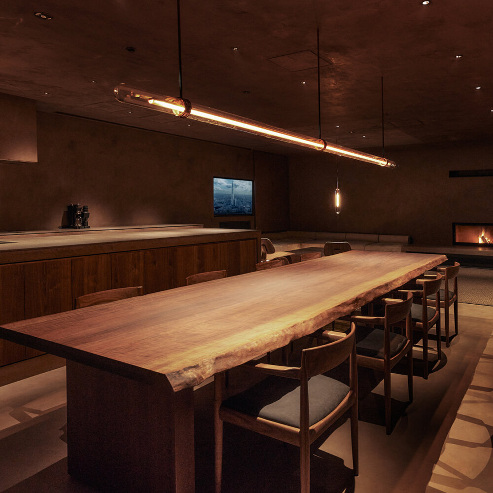 NOT A HOTEL NASU CAVE (see more here) features a cavernous cold bath, drenched in darkness, where visitors can enjoy a moment of calm while gazing at the water’s flickering surface. Complementing the cave-like experience is a glass-enclosed sauna filled with sunlight and framing the outdoor scenery and, just outside, an infinity pool spanning nine meters in width, surrounded by trees. Moving to the more private areas, the team at Suppose Design Office includes an equally cavernous hot spring tucked inside a bathroom, with a wide view towards the ranch.