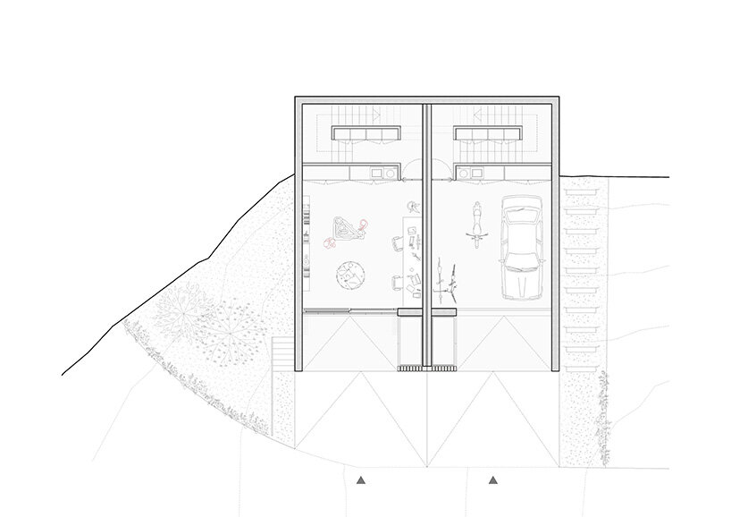 a continuation of the existing rock formations, the hotel is articulated as a series of stepped horizontal planes, courtyards, and gardens.