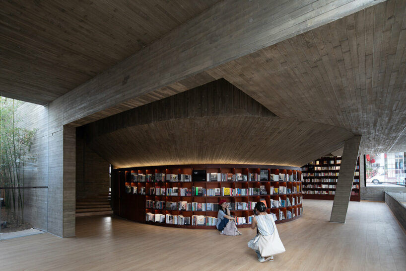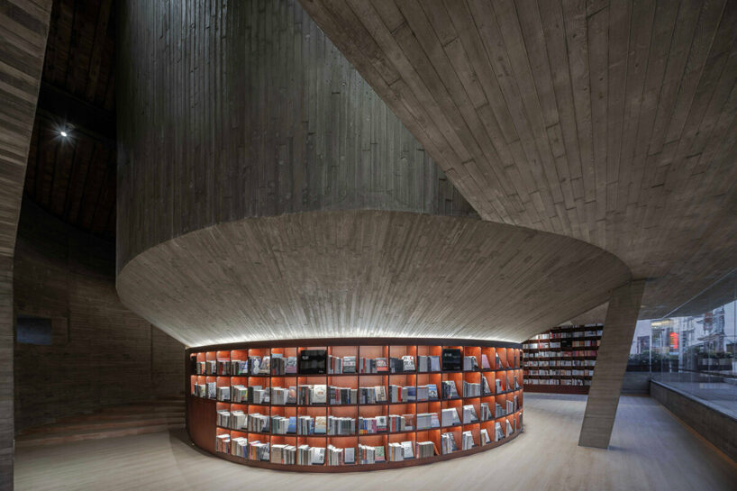 two steel-framed book corridors enhance perspective and depth, creating a unique ‘spiritual tunnel’ for visitors