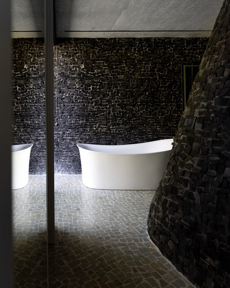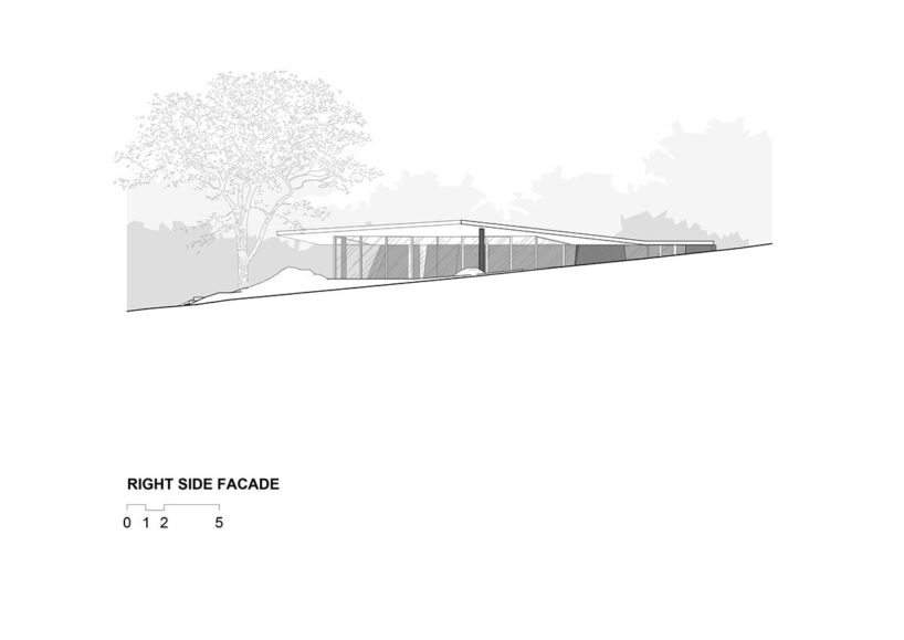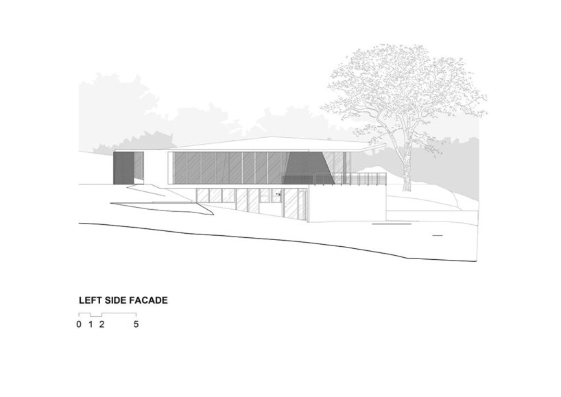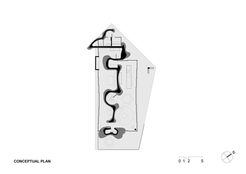 a winding wall divides the house into two areas: one open and social, the other quiet and introspective