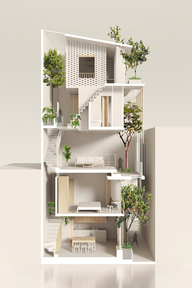 this narrow, five-storey vietnamese residence adapts to extreme urban density