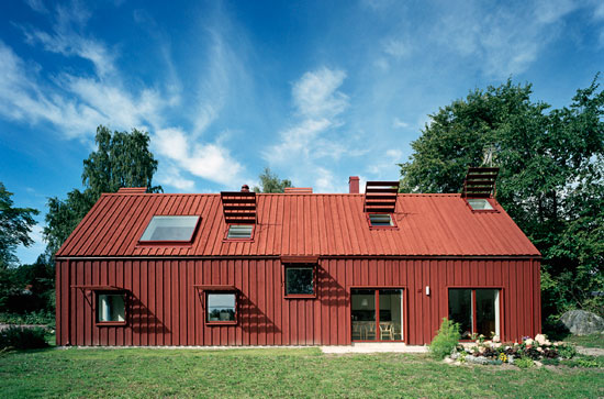name: house karlsson architect: tham & videgård arkitekter, bolle tham and martin videgård. client: björn and berit karlsson collaborators: john billberg, fredrik olsson, claes sörstedt, måns tham civil engineer: konkret rådgivande ingenjörer, olle norrman dates: project 2000, construction 2002 surface: 200 m2 cost: 250.000 euro (1250 euro/sqm) photography: åke e:son lindman