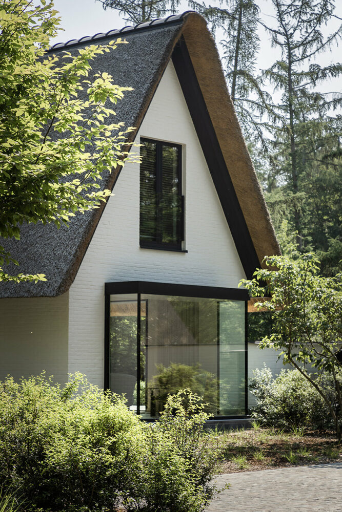 belgian thatched-roof house gets a sleek pavilion extension by mieke van herck architects