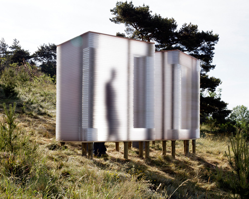 as the light changes during the passing of the day, so does the appearance of the viewpoints. the polycarbonate creates peculiar reflections and fractured compositions of the color of the sky, the surrounding vegetation and the passing clouds.