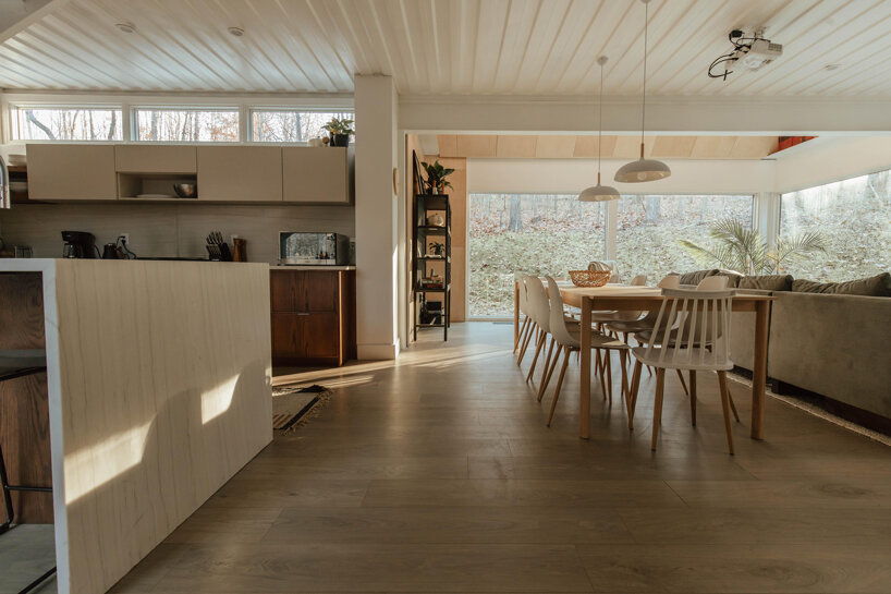 Husband and wife Emily and Seth Britt always wanted a place to escape their busy city life in Columbus, Ohio. After a year or so of planning, the pair turned their dream into reality by building their first shipping container home. Nowadays, the Britts have their own company called The Box Hop, where they rent out container homes, which they design and build, as short term vacation retreats. The newest addition to their portfolio is a five bedroom cabin called The Hygge Box Hop situated in a remote site in Rockbridge, just 12 miles from Hocking Hills State Park.