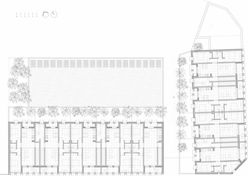 Salvador Espriu social housing features interconnected volumes forming an L-shape design