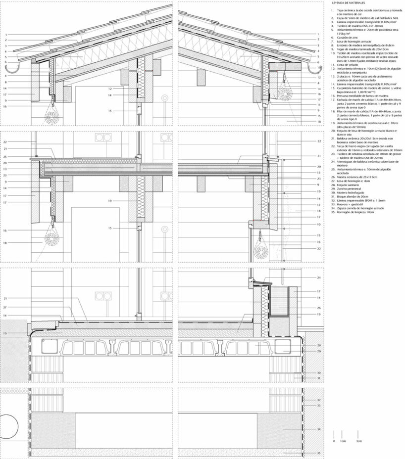 the structure is constructed with 20 cm-thick marés sandstone walls for thermal mass and passive cooling