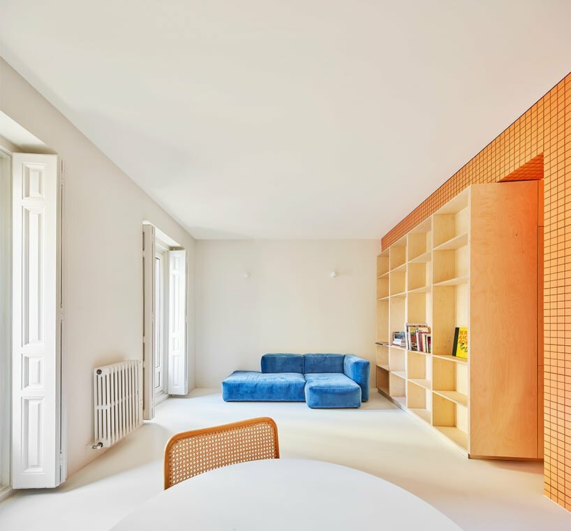 the design enhances the apartment’s flexibility and optimizes space utilization