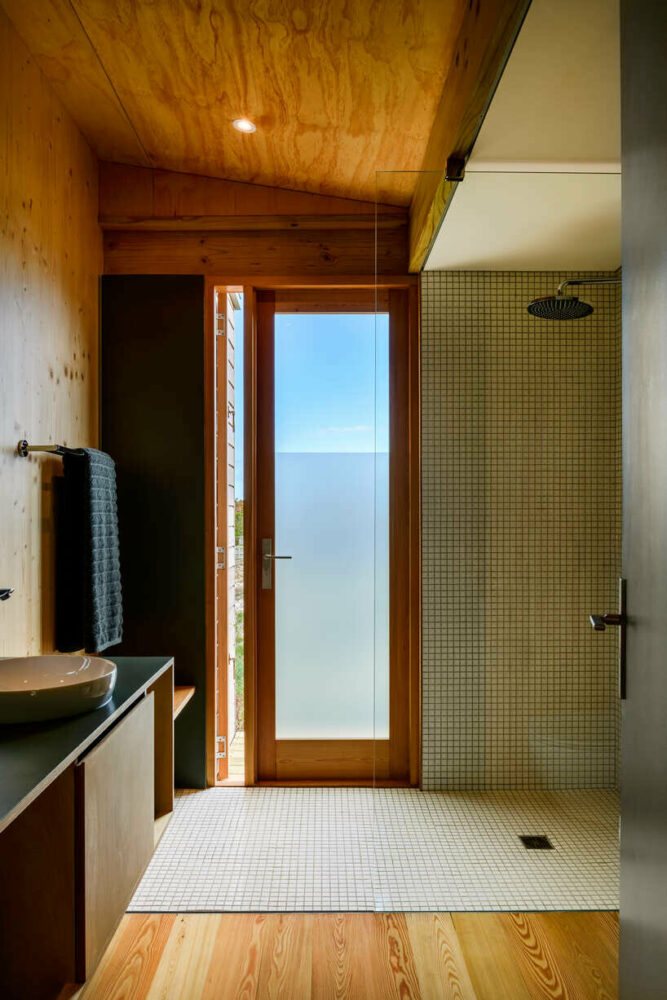 Designed to harmonize with the sensitive ecological balance, the architecture aligns with sustainable building practices. Elevated on timber posts, the house treads lightly on the dune environment, respecting the natural terrain of the landscape. The distinctive roofscape acts as a shield against winds from the ocean and mountain, creating an outdoor sanctuary during varying weather conditions. The structure’s foundations showcase an innovative approach, utilizing excavated soil for stability and incorporating barrels as permanent shuttering to minimize environmental impact.