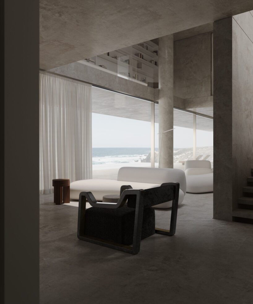 Stone House is situated on a rocky oceanfront slope in Portugal, where its design is integrated into the topography to preserve the natural terrain and maintain unobstructed views of the Atlantic. The residential project organizes interior and exterior spaces to support a quiet, uninterrupted relationship with the surrounding landscape.
