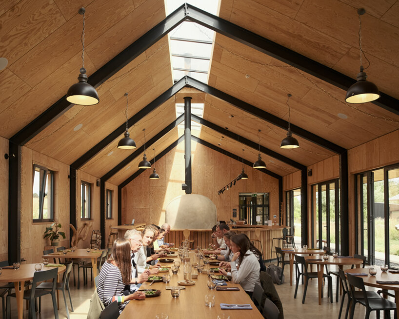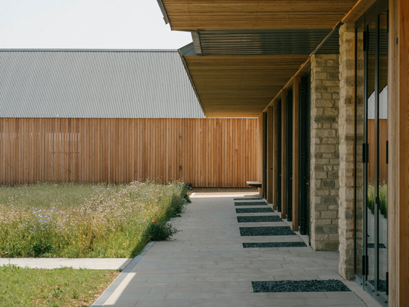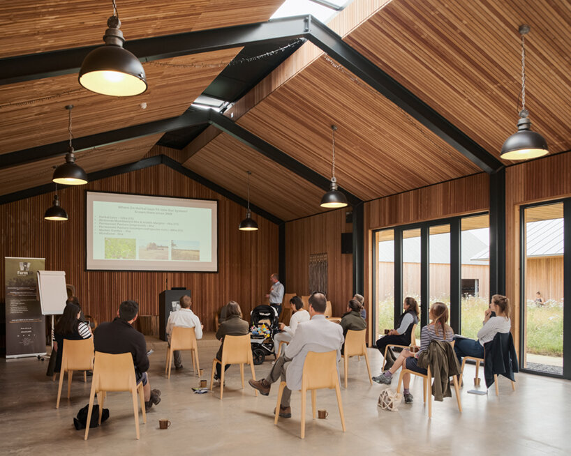 timothy tasker architects completes a sustainable farming education center dubbed ‘farmEd’ in the cotswolds, a rural area in england. the project is realized with the environment and regeneration at its core. farmEd at honeydale farm works to educate communities on the role of regenerative farming in combating climate change, a mission that extends to the architectural aspiration and execution of three highly efficient mixed-use buildings on site.
